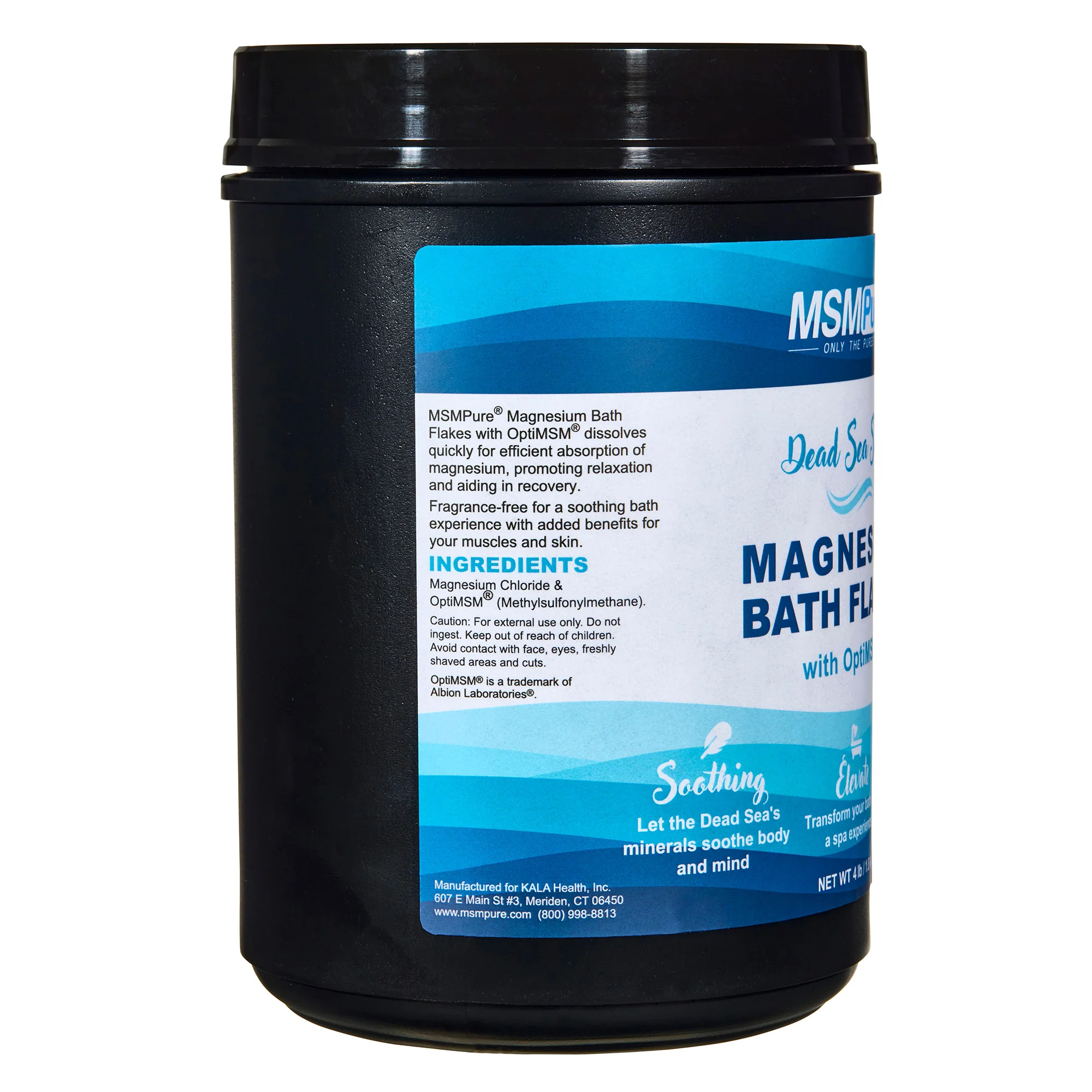 MSMPure Magnesium Bath Flakes with OptiMSM – Natural Dead Sea Magnesium for Muscle Recovery, Joint Support & Stress Relief – 4 lb—
